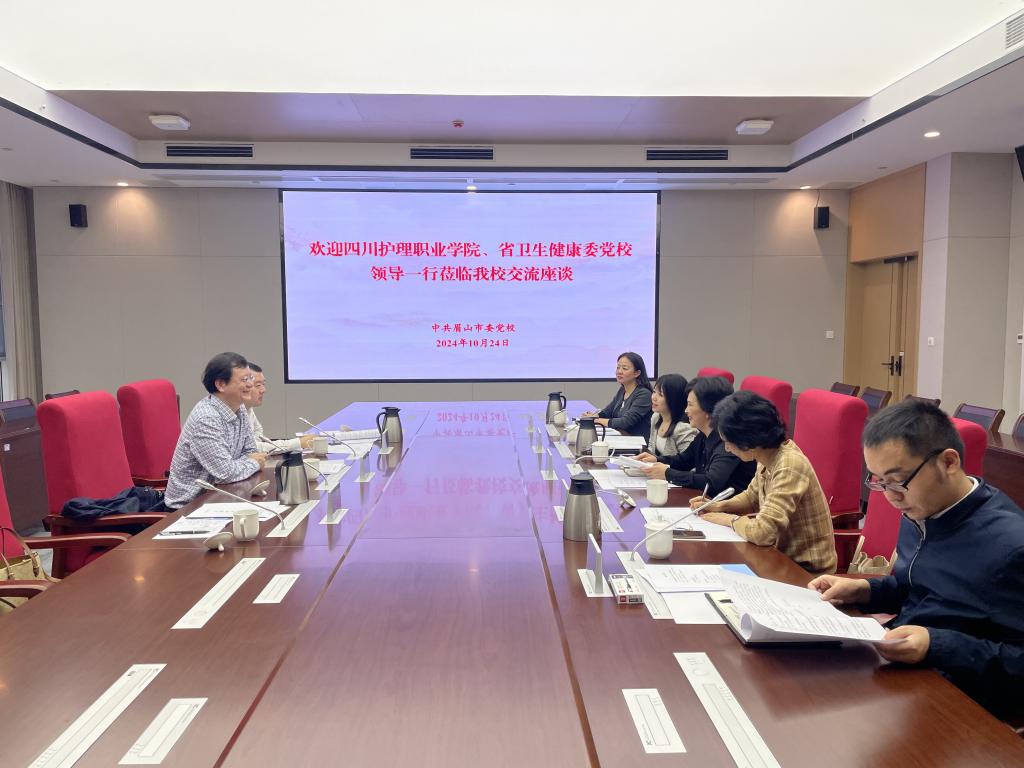 为进一步推进中共四川省卫生健康委党校建设,10月24日,省卫生健康委党校常务副校长、学院党委书记江涛带队前往中共眉山市委党校调研,眉山市委党校常务副校长、市委讲师团团长尹鸿、副校长吴俊瑾、眉山市卫生健康委副主任徐容及相关业务处室同志陪同,委党校办公室、教育教学部相关人员参加调研。