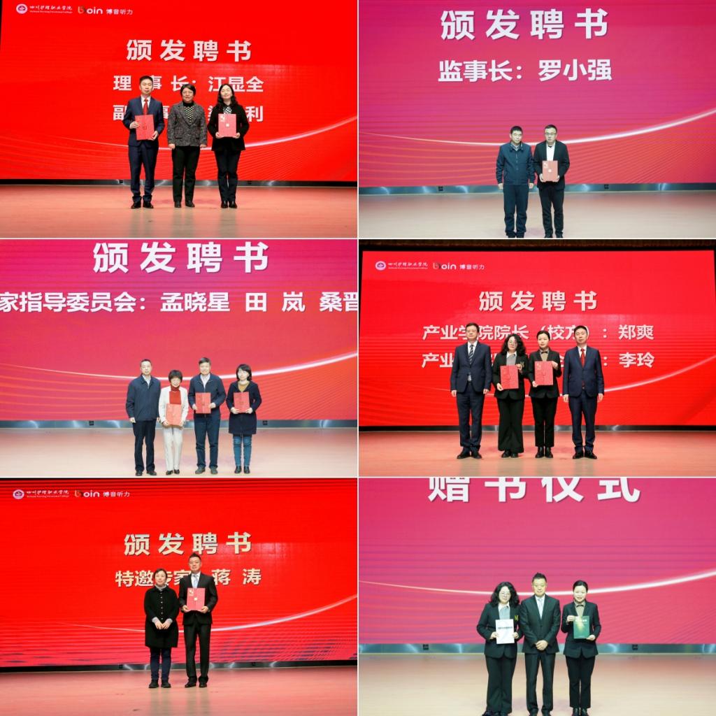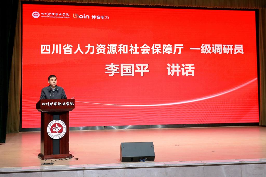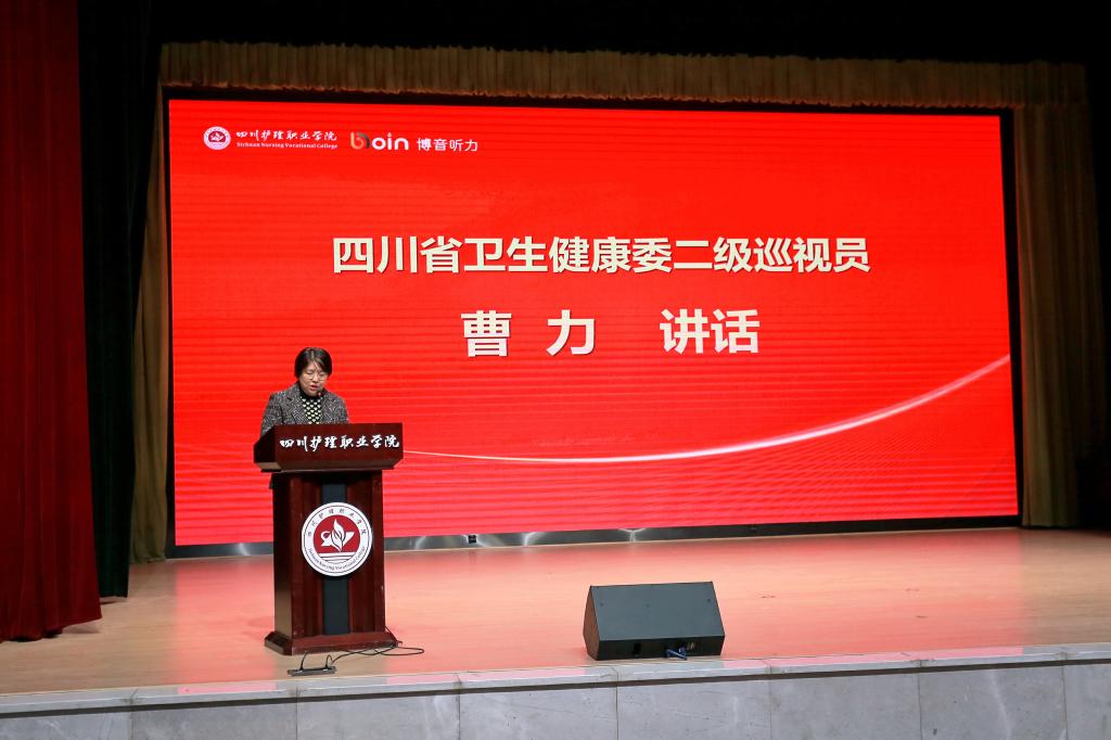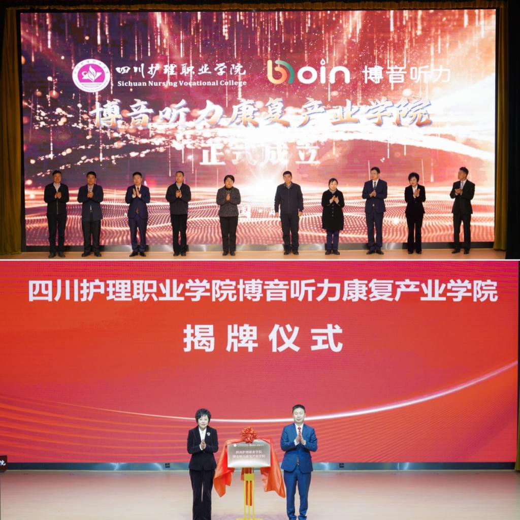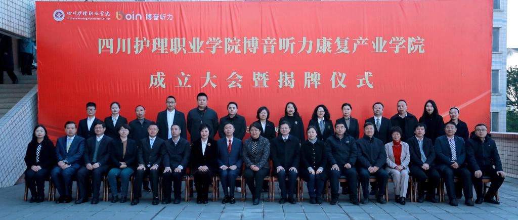 1月11日,76net必赢线路检测中心博音听力康复产业学院成立大会暨揭牌仪式在学院成都校区举行。四川省卫生健康委二级巡视员曹力、科教处处长张翻蓉、四川省人社厅职业能力建设处一级调研员李国平、四川省康复辅具技术服务中心主任陈光庆等有关领导出席大会并讲话。学院领导、博音听力技术(上海)有限公司高层管理团队、行业专家及全体教职员工共360余人参加大会。