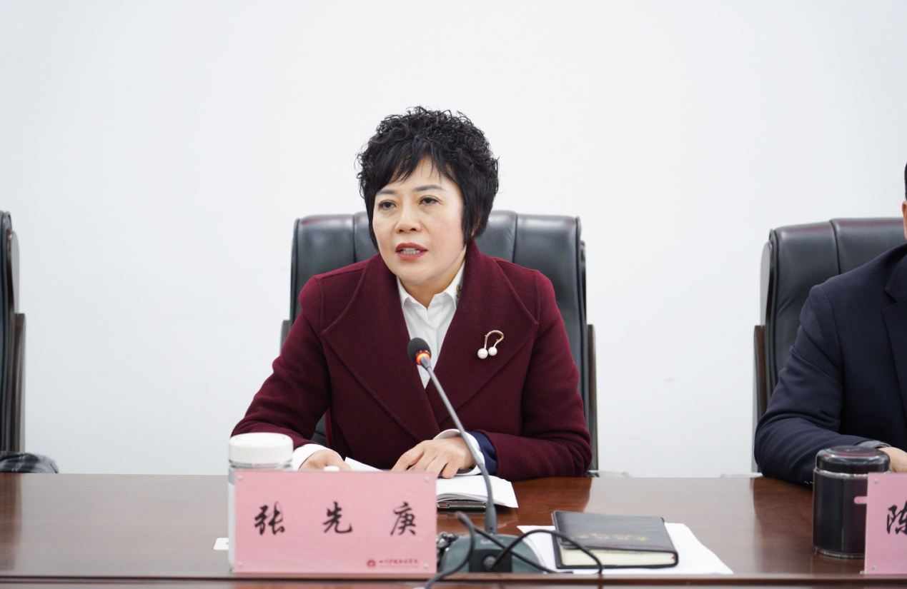 学院院长张先庚传达了2025年全省教育工作会议精神。她指出,全省教育工作会议全面部署了本年度教育工作,充分展现了省委、省政府和省教育厅对教育事业以及教育强省建设的高度重视和系统谋划。全体教职工一要认真学习、深刻领会,结合学院实际制定切实可行的实施方案,确保会议精神落地落实。二要聚焦“新双高”建设要求,对照“国双高”、“省双高”指标,精准找差距,补短板,力争建成系列标志性成果,不断提升学院的核心竞争力。三要狠抓重点难点工作,尤其是在产教深度融合方面持续精准发力,以社会需求为导向,以“五金”建设为抓手,以“一老一小”健康照护人才培养为特色,深化产教融合、校企合作,推进“政行校企”协同育人,推动人才培养与产业需求的无缝对接,在奋力书写教育强国、健康中国建设的川护答卷中展现新作为,为学院发展注入新动力,推动学院高质量发展。