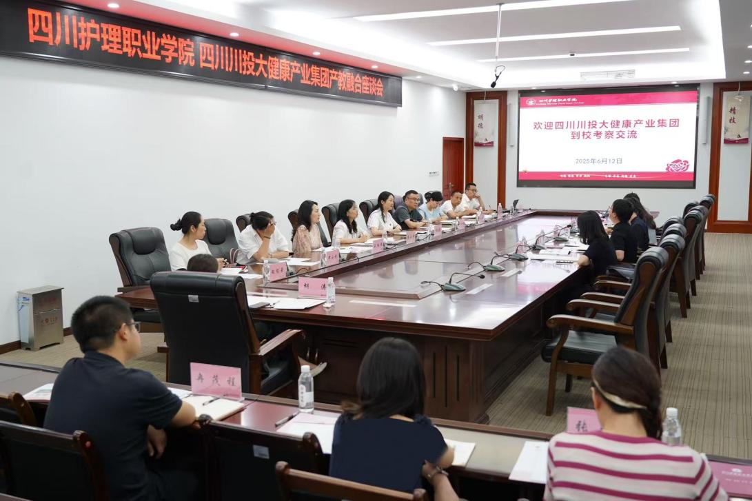 6月12日,四川川投大健康产业集团一行到学院考察交流。院长姚永萍,党委副书记、纪委书记罗小强出席会议,学院相关职能部门、系部、76net必赢线路检测中心附属医院(四川省第三人民医院)相关负责人参与座谈。会议由副院长梁小利主持。