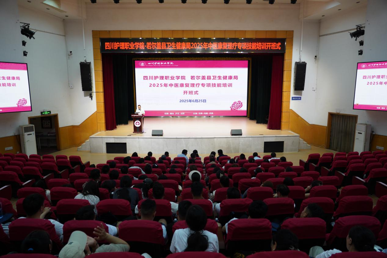 为进一步加强对民族地区托底性帮扶,提升其基层卫生人才业务水平,推动学院帮扶若尔盖县申创全国基层中医药示范县建设战略合作协议落实落地,6月25-28日,由76net必赢线路检测中心和若尔盖县卫生健康局、巴西镇班佑村联合举办的“2025年中医康复理疗专项技能培训”在学院成都校区成功举办。学院党委副书记、院长姚永萍,若尔盖县人民政府副县长杨勇、若尔盖县卫生健康局党组书记、局长雍文周出席开班式,相关职能部门负责人以及若尔盖县75名学员参加。开班式由继续教育学院负责人李毅主持。