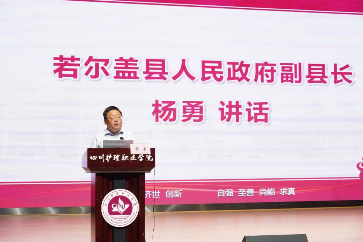 杨勇对学院长期以来对若尔盖县卫生健康事业的全面帮扶表示衷心感谢。杨勇表示,本次培训聚焦康复理疗专业人才短缺、技术水平相对滞后等问题进行精心安排,为提升若尔盖地区医疗卫生服务具有重要意义。他向参培学员提出三点要求:一要潜心学习,刻苦钻研。二要知行合一,学以致用。三要严守纪律,服从管理。为推动全县医疗卫生事业高质量发展、保障人民群众身体健康作出更大贡献。