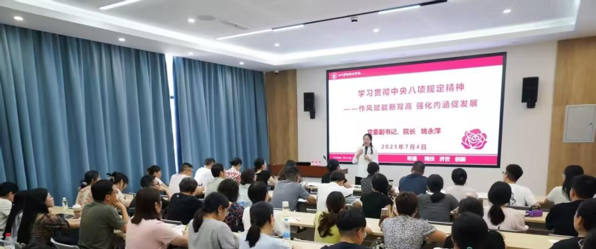 姚永萍以《大学》为切入点,聚焦新时代学院教风建设,将《大学》“格物致知、诚意正心、修身齐家治国平天下”的修身之道与落实中央八项规定精神相结合,分享了自己研读《大学》的思考与感悟。她要求,全体教职工要将中央八项规定精神转化为师德师风建设的内在动力,传承“苟日新,日日新,又日新”的创新精神,不断进行精神洗礼、品德修炼、思想提升。