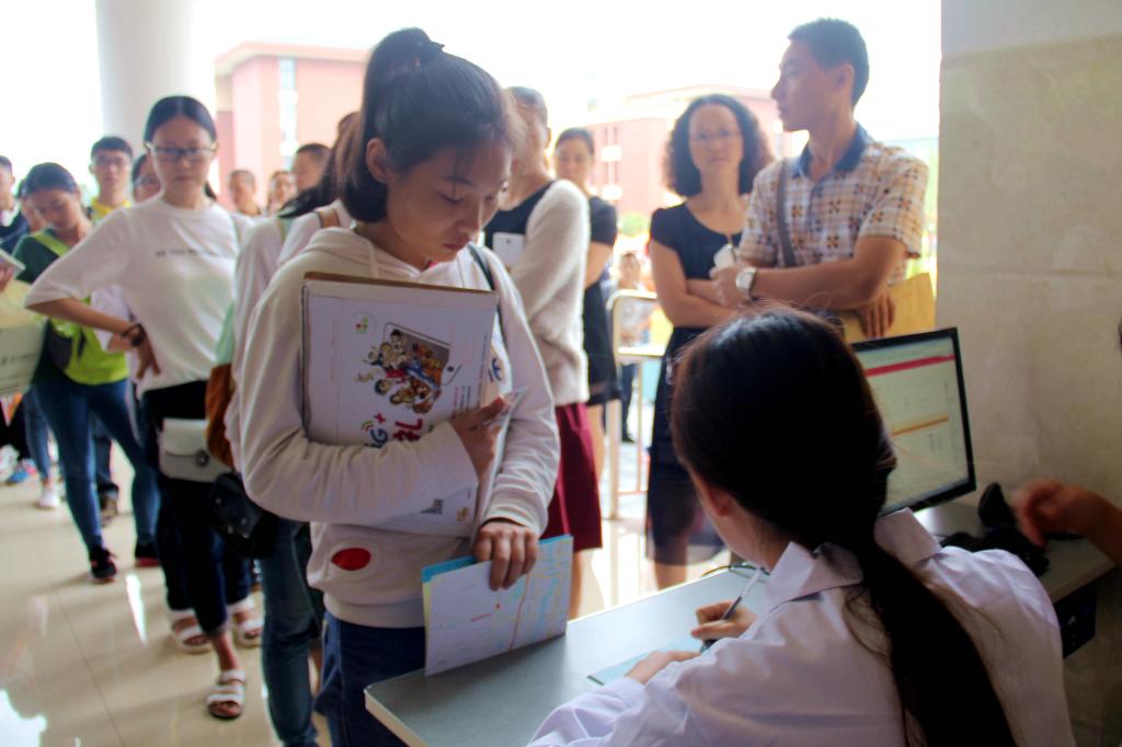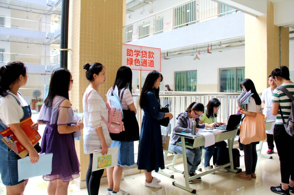 今年我院对迎新工作流程进行优化,新生报到采用手续分流办理、先入班再缴费以及快捷网络缴费等方式,审录、缴费、登记、入班、物品发放等环节有条不紊,大大提高了办理入学手续的效率。此外,为保证家庭困难学生顺利入学,学院专门开辟了绿色通道,为困难学生提供贷款和缓交、免交学费等服务。