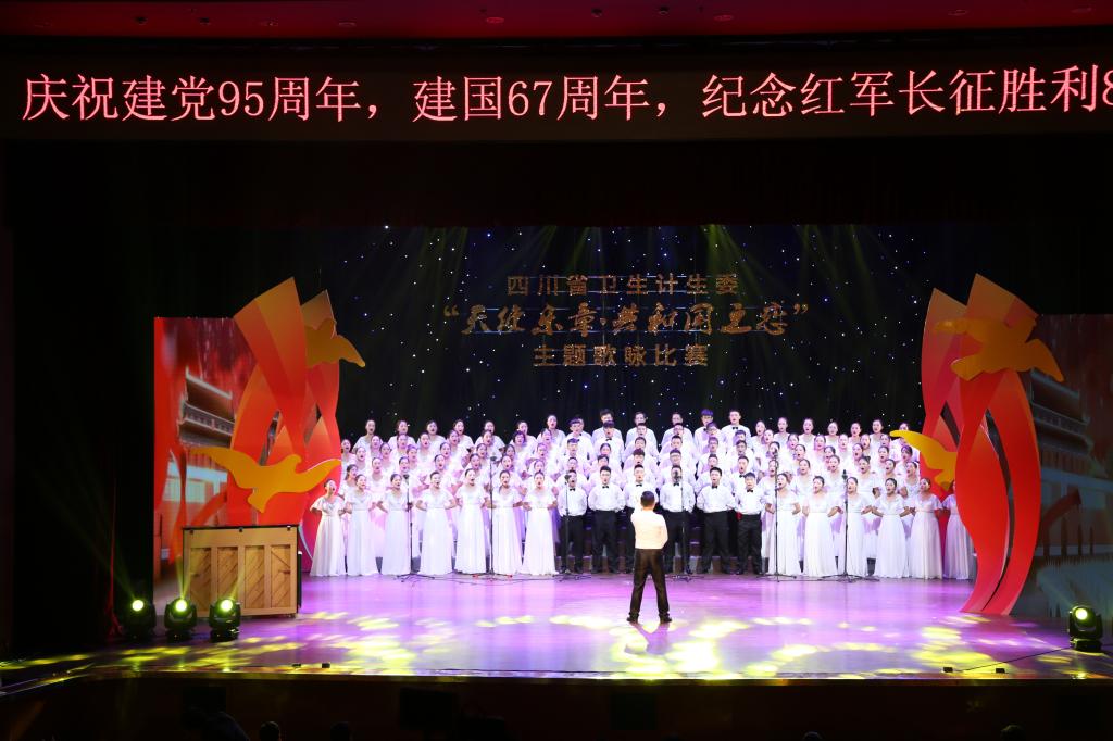 10月11日,我院合唱队参加四川省卫生计生委举办的中国共产党成立95周年、中华人民共和国成立67周年、红军长征胜利80周年“天使乐章 共和国之恋”合唱比赛。在20支参赛队伍中,我院的参赛曲目《旗帜颂》荣获二等奖。