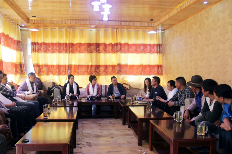 我院在修卡村开展精准扶贫工作得到了壤塘县当地政府的大力支持。张先庚院长专程与壤塘县副县长贾永和就精准扶贫工工作进行了深入交流。张院长向贾县长详细介绍了我院开展扶贫工作情况,以及下一步的工作打算。贾县长对我院扶贫工作给予肯定和感谢,同时现场授予学院“情系高原藏区,援助壤塘发展”大红锦旗。贾县长希望学院加大宣传力度,积极弘扬扶贫正能量,帮助村民们更快更好地走上致富路。