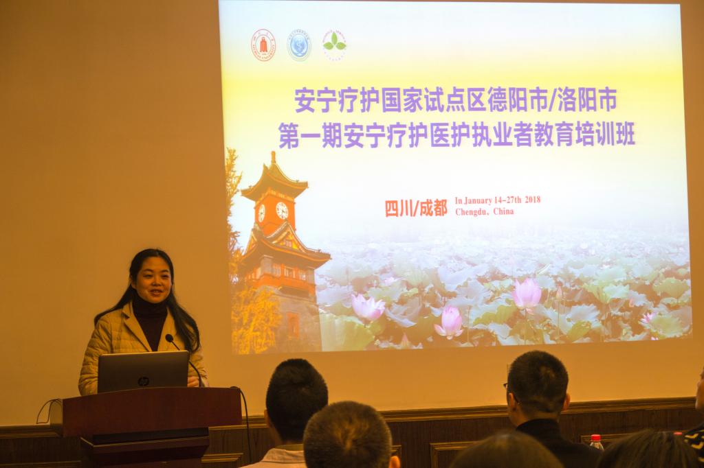 参加此次培训班的学员共31名,主要为安宁疗护国家试点区德阳市和洛阳市的医护工作者,还有来自云南瑞丽、四川南江县、南充市等地的学员。我院共有4名教师参加此次培训,他们以护理专业为主,涉及临床医学和药学等多学科。其中2名教师做专题讲座。