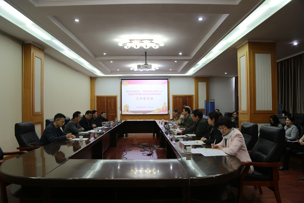 在调研工作座谈会上,张先庚院长代表学院向调研组汇报学院建设和人才培养工作,江涛书记从理论学习、大思政建设、党委领导核心作用的发挥、干部队伍建设、基层党组织建设、正风肃纪、意识形态工作等七个方面,汇报了学院全面加强党建工作的主要做法,姚永萍副院长汇报了学院附属医院党建工作情况。