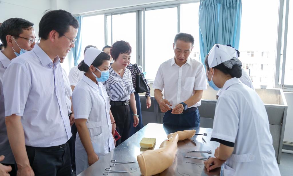 在学院领导的陪同下,沈书记一行先后来到学院新女宿、教学楼、实训室,实地了解学院常态化疫情防控工作及在校师生教学学习情况,对学院疫情防控措施完善,教学工作井然有序及师生良好的精神面貌进行了充分肯定。