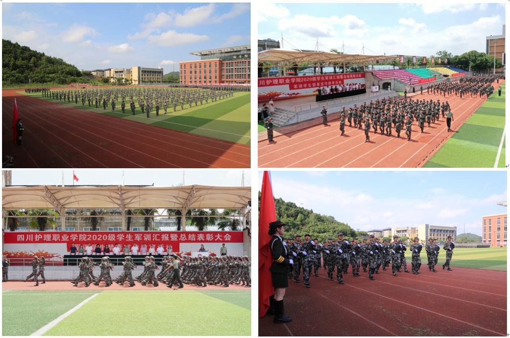 7月,骄阳似火,在绿油油的足球场上,军训总结大会在庄严的国歌声中拉开帷幕。各连方队士气高昂、意气风发,口号嘹亮,依次汇报了分列式、持枪战术、擒敌拳、匕首操、刺杀操等科目,充分展示了训练成效,展现了川护学子积极向上的精神风貌。
