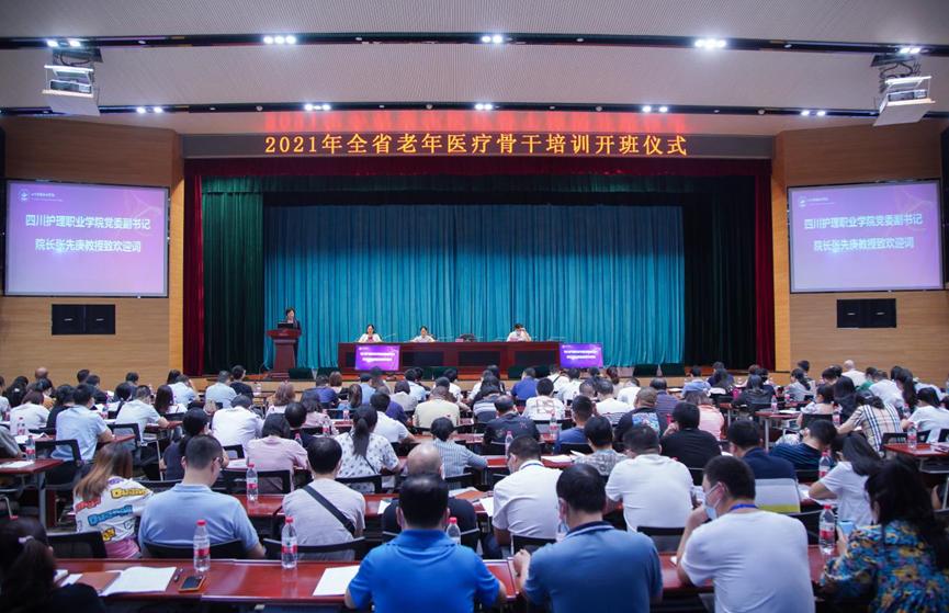 9月23日,由四川省卫生健康委主办,76net必赢线路检测中心承办的2021年全省老年医疗骨干培训在成都市龙泉驿区举行开班仪式,来自全省21市(州)180名老年医疗骨干参加。省卫生健康委老龄健康处处长韩梅出席开班仪式并讲话,学院党委副书记、院长张先庚教授致辞,开班仪式由学院副院长姚永萍主持。