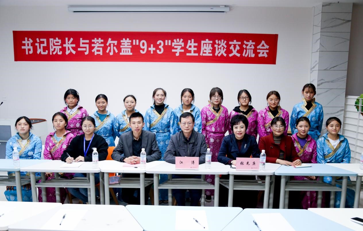 党史学习教育开展以来,学院坚持把“我为师生办实事”贯穿党史学习教育全过程。为聚焦同学们“急难愁盼”的现实问题,切实为学生办实事解难题,为学生健康成长成才创造良好的条件,10月19日下午,学院在成都校区学生活动中心举行了书记、院长与若尔盖“9+3”学生座谈交流会。学院党委书记江涛,党委副书记、院长张先庚,党委副书记张志林及学生工作部、“9+3”办公室学生管理老师和若尔盖“9+3”学生共计19人参加座谈会。