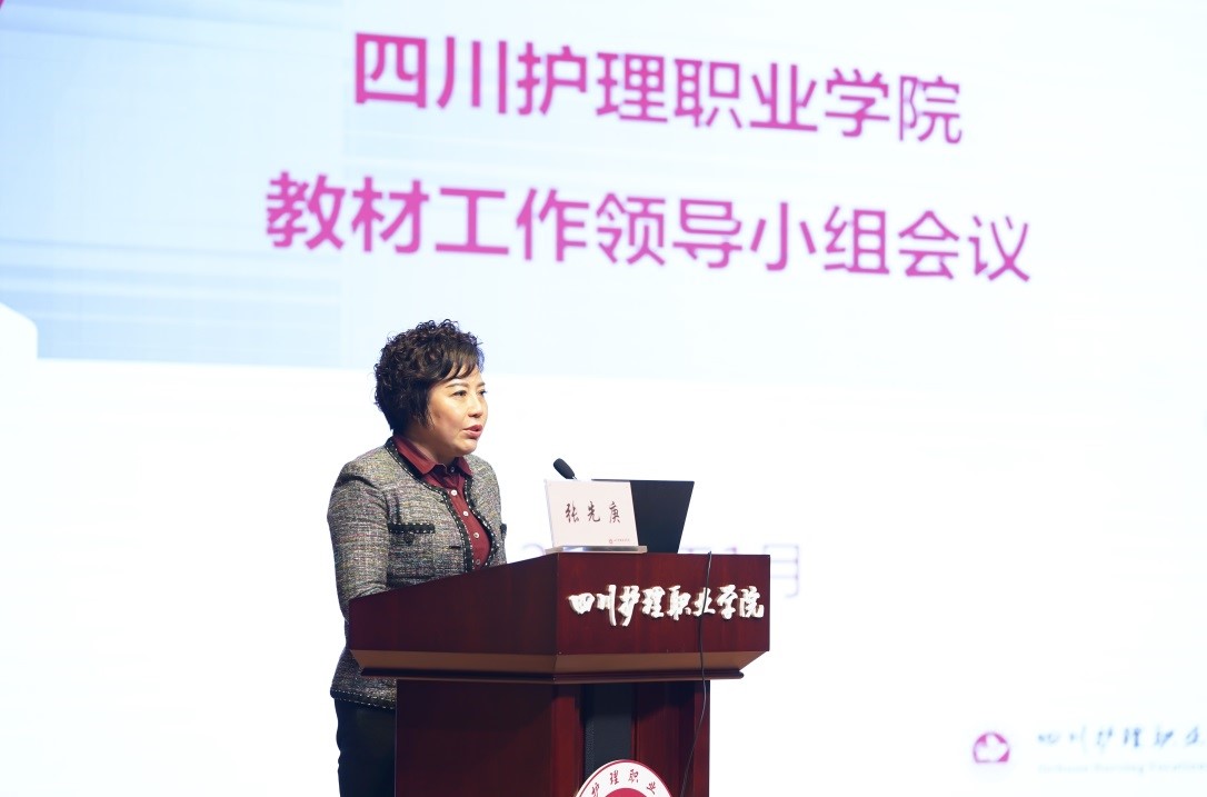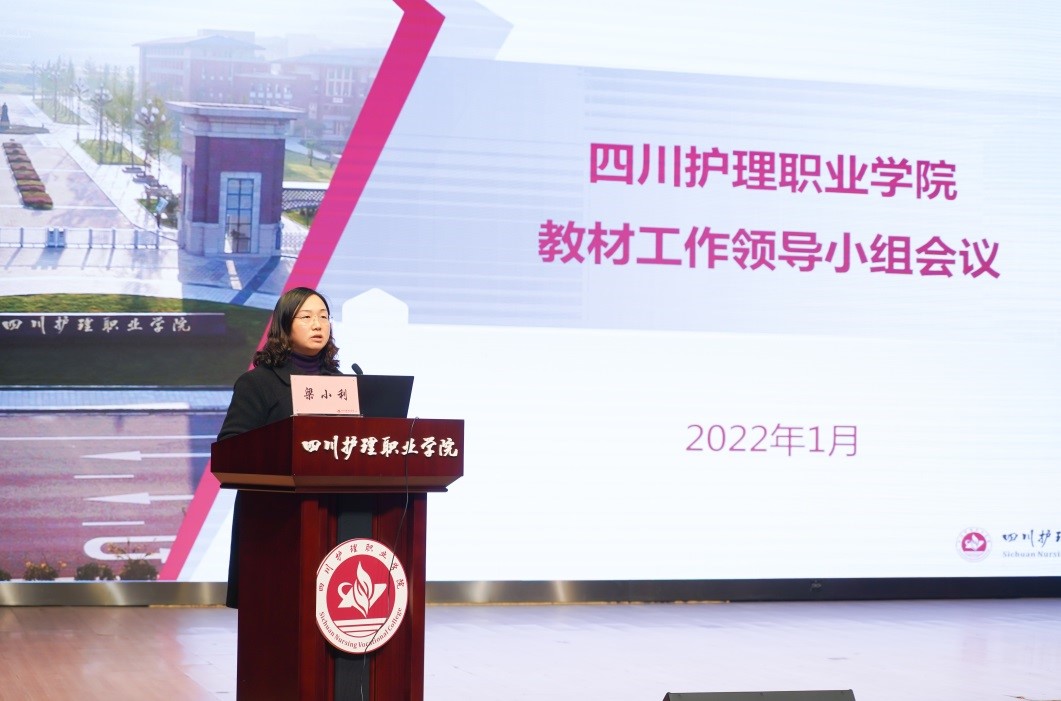 为深入贯彻落实教育部《职业院校教材管理办法》和四川省教育厅相关文件精神,加强教材管理工作,2022年1月6日,学院在成都校区学术报告厅召开教材工作领导小组会议。学院教材工作领导小组组长、党委副书记、院长张先庚,教材工作领导小组副组长、党委副书记张志林出席会议,相关职能部门和各系部负责人等领导小组成员参加会议,会议由教务处处长梁小利主持。