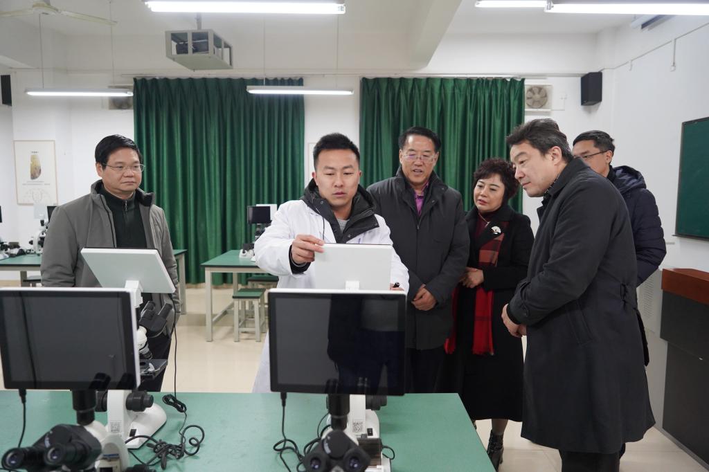 考察组一行全面考察了学院发展历程,校园建设与校园文化,聚焦学院“一老一小”卫生健康人才培养特色,深入国家级虚拟仿真示范培育基地考察,重点对母婴护理、婴幼儿照护、360度沉浸式急救技术、3D数字人解剖、双目体式显微镜实验室等进行考察。