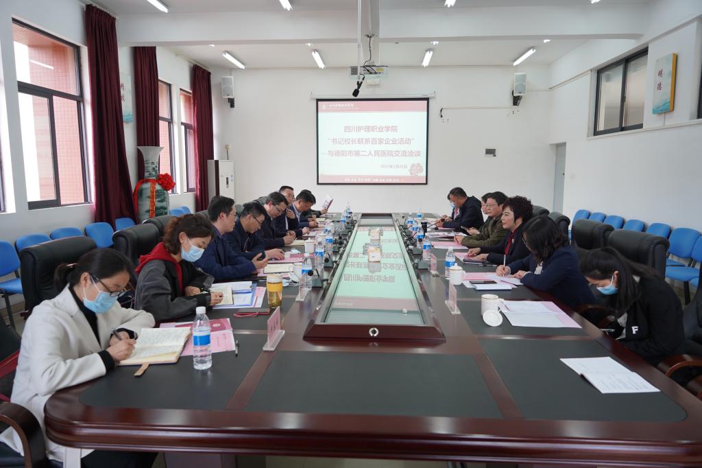 为贯彻落实教育部2022届高校毕业生就业工作调度视频会议精神,3月25日,学院“书记院长联系百家单位系列活动”邀请德阳市第二人民医院到我校参观交流,双方就院校合作事宜进行座谈。座谈会由学院副院长姚永萍主持。