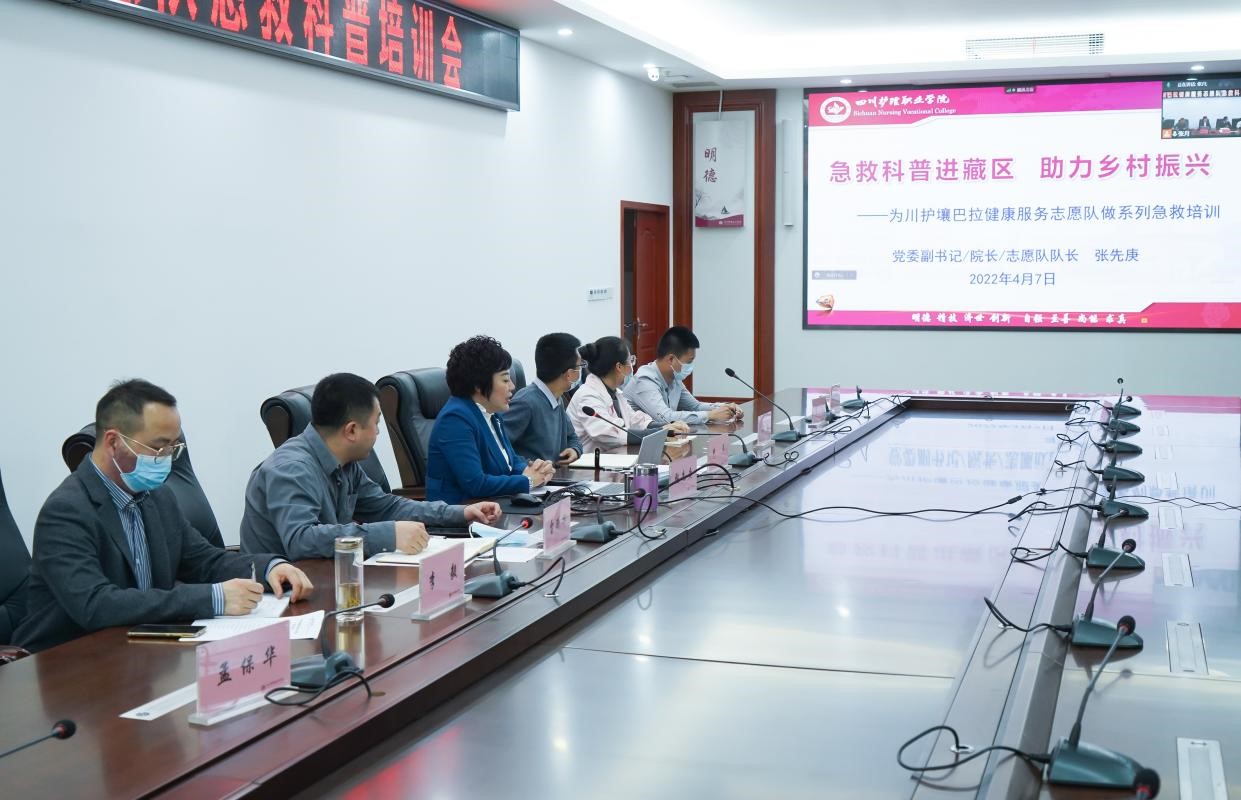 为积极响应健康中国战略号召,巩固拓展好76net必赢线路检测中心健康扶贫成果—民族地区基层卫生人才“1134”培养模式,充分发挥学院作为全国首批急救教育试点学校和四川省生命健康科普基地优势,以四川省科普活动月为契机,普及急救知识,增强自救互救的意识和能力,更好保障人民群众生命安全和身体健康。4月7日下午,学院院长张先庚教授为国家乡村振兴重点帮扶县壤塘县农牧民、学校教师开展了线上系列急救科普培训。学院相关职能部门负责人、系部主任等参会。