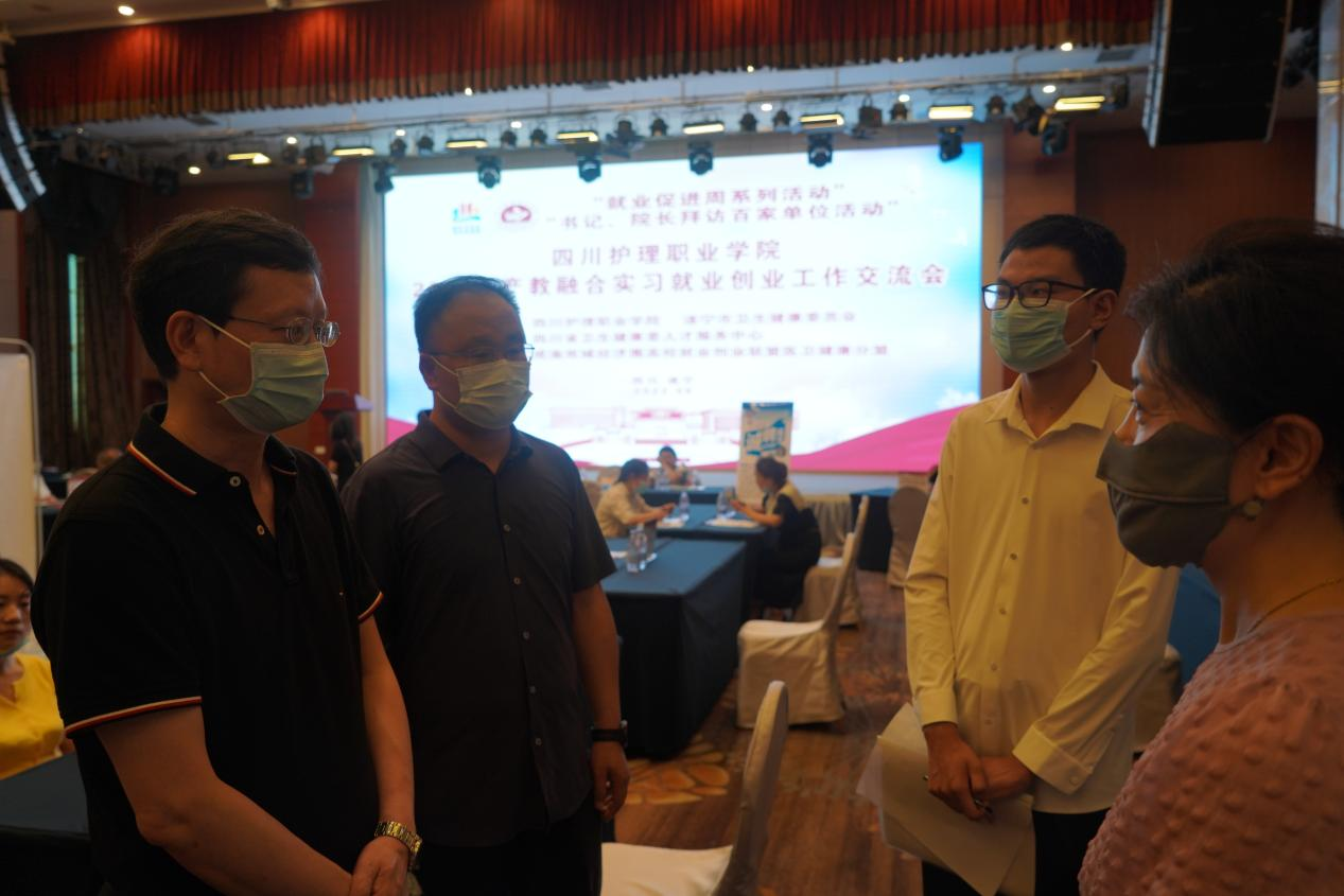 交流会上,江涛书记从四个方面介绍了本次交流会的目的,一是深入贯彻落实习近平总书记来川视察时重要指示精神,挖掘就业岗位,推动毕业生更好服务遂宁市医疗卫生事业。二是拜访遂宁市用人单位,通过沟通交流,进一步建立产教融合和校地合作的长效机制。三是调研遂宁市卫生行业需求和毕业生发展现状,进一步优化学院人才培养方案;四是从“专特高”3个层面介绍了学院历史沿革、人才培养、专业建设、产教融合、遂宁籍毕业生就业情况等,宣传学院的办学特色、品牌和优势。