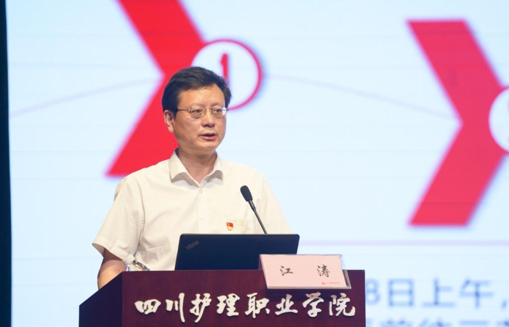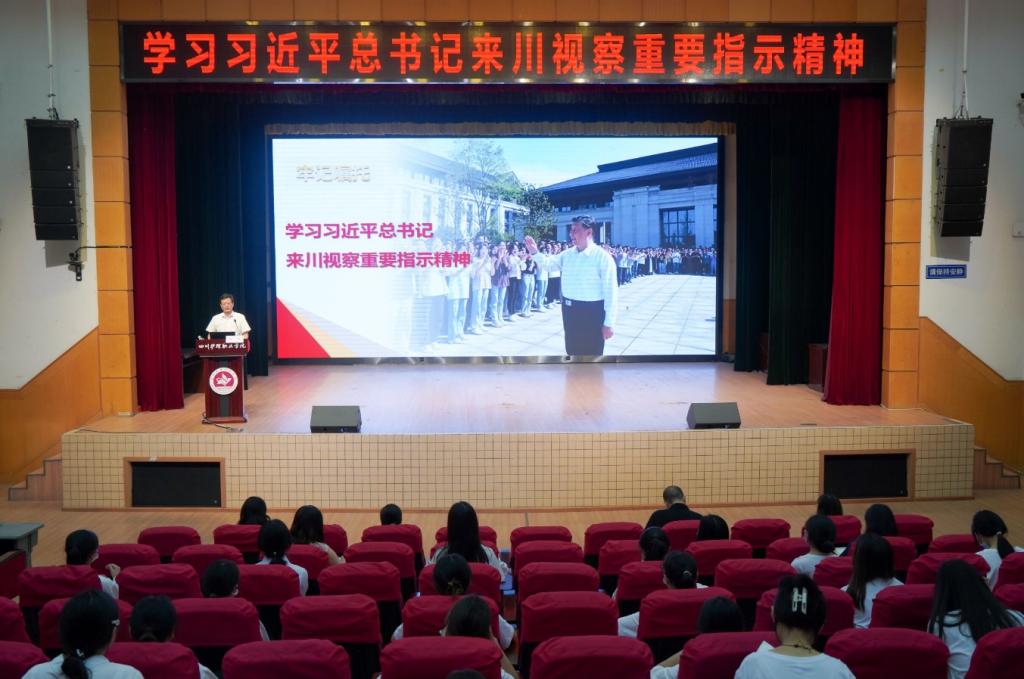 为深入学习贯彻习近平总书记来川视察重要指示精神和省第十二次党代会精神,6月23日,学院党委书记江涛作题为《牢记嘱托向未来 共绘治蜀兴川新篇章》专题讲座,学院相关职能部门负责人、系部党总支书记、师生代表聆听讲座。
