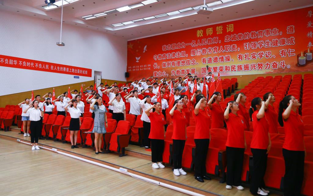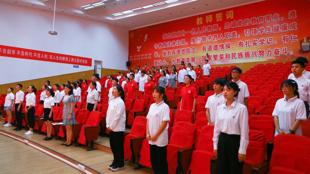 学院团委书记段妍妍带领实践队伍宣誓,以青春之名,宣时代之誓。