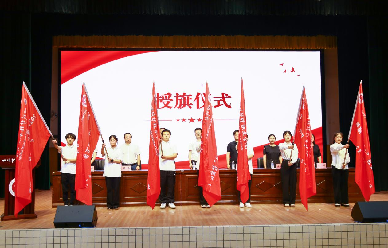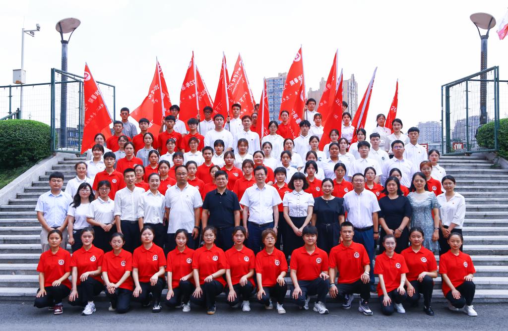 与会领导为学院2022年大学生暑期“三下乡”社会实践服务团授旗。