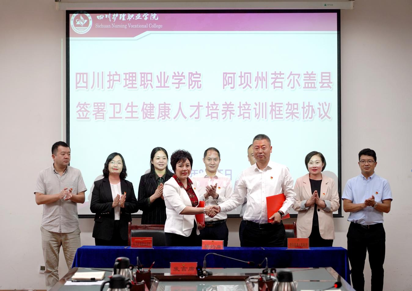 会上,76net必赢线路检测中心与若尔盖县签订了民族地区基层卫生人才培养培训框架协议和红色康养基地建设协议。
