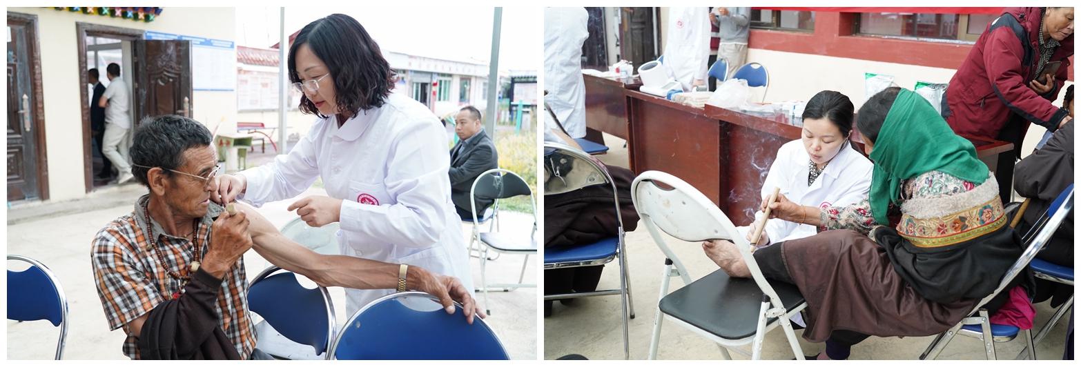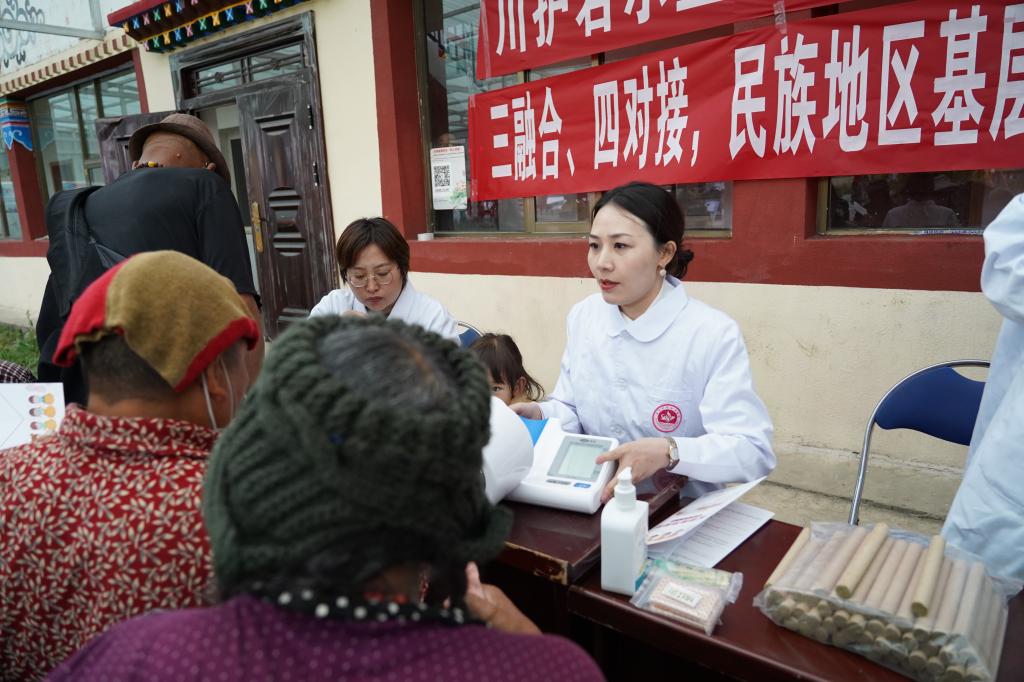 在科普现场,张先庚为前来听讲座的农牧民耐心讲解了卫生健康科普的重要意义和学院下一步开展卫生健康科普的具体举措与未来规划;姚永萍以“家庭小药箱的配置与规范化管理”为题,从小药箱里装什么、如何管理小药箱和如何安全管理家庭小药箱三大方面进行了全面指导;高等教育研究发展中心副主任王红艳向农牧民开展了常见病、高发病——高血压的科学防治方法,现场演示了规范测血压的方法。同时,学院专家为农牧民开展了测血糖、艾条灸、中医推拿等常规诊疗服务与自我操作指导,发放价值4000余元的常用药品及80册《高原常见病科普手册》,活动得到农牧民一致好评。