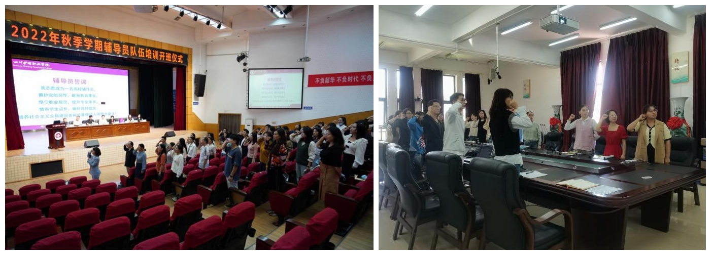 为深入学习贯彻习近平新时代中国特色社会主义思想,加强辅导员队伍建设,提升辅导员育人能力和水平,9月28日下午,学院举办2022年秋季学期辅导员队伍培训开班仪式。学院党委书记江涛,党委副书记、院长张先庚出席开班仪式,学生工作部、各系主要负责人和全院学工管理老师及全体专兼职辅导员共计60余人参加活动。仪式由学院党委委员、副院长陈劲松主持,采取线上线下相结合的形式进行。