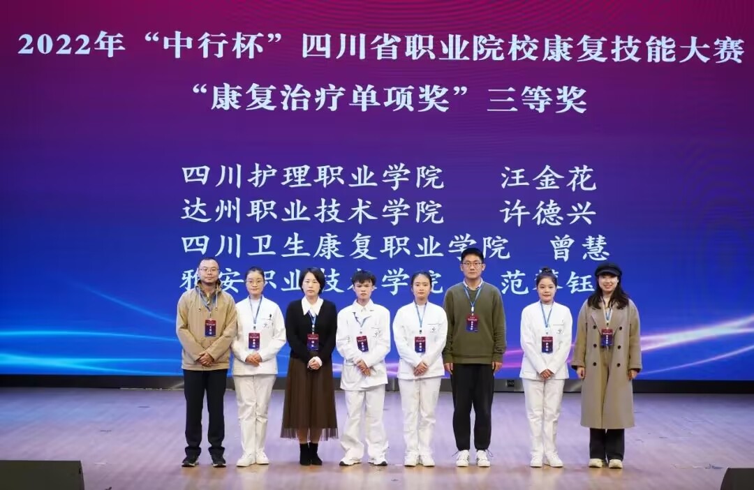 11月3日-4日,由四川省教育厅主办,76net必赢线路检测中心承办,四川省康复治疗师协会、76net必赢线路检测中心附属医院(四川省第三人民医院)、上海弘联医学科技有限公司、四川百臻天泽医学设备有限公司协办的2022年“中行杯”四川省职业院校康复技能大赛在我院成都校区举行,共有来自省内的14所高校代表队64名选手参赛。