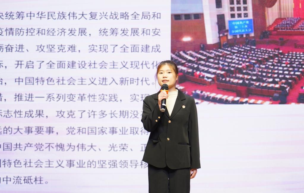 比赛中,来自各系选送的10名选手进行了精心展示,选手根据主题自行拟定演讲题目,完成6分钟演讲。选手们精彩的演讲表达了对先驱的怀念、对悲惨历史的铭记和对祖国强大的自豪,他们用自己的声音传播爱国的力量,讲出了新时代青年“请党放心 强国有我”的壮志与豪情,倡议大家要牢记历史使命,不忘初心,铭记历史,缅怀革命先辈,谨记来之不易的幸福生活。