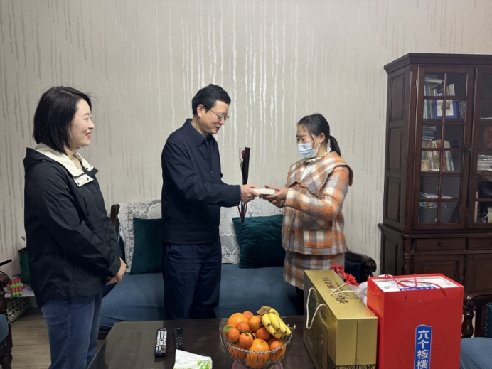 学院党委书记江涛、妇委会主任邱赞走访慰问了生病女职工代表,关切询问其身体状况和家庭情况,带去学院的关怀与温暖,送上节日的慰问和祝福。