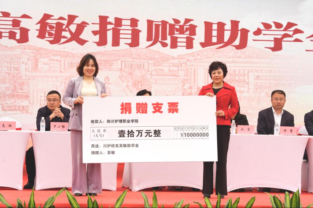 优秀校友高敏向学院捐赠助学金,张先庚院长代表学院接受捐赠。高敏师姐祝贺母校取得的各项成绩和为社会作出的突出贡献。她深情回忆起在母校学习成长的青春岁月,和学弟学妹们分享了生命中触动和影响自己的人和事,勉励学子们勤学专业、勤练技能、勇往直前、积极奉献、学会感恩、勇于担当,成为更好的自己。希望自己今天的捐赠,可以点燃星星之火,为健康中国贡献自己的力量。