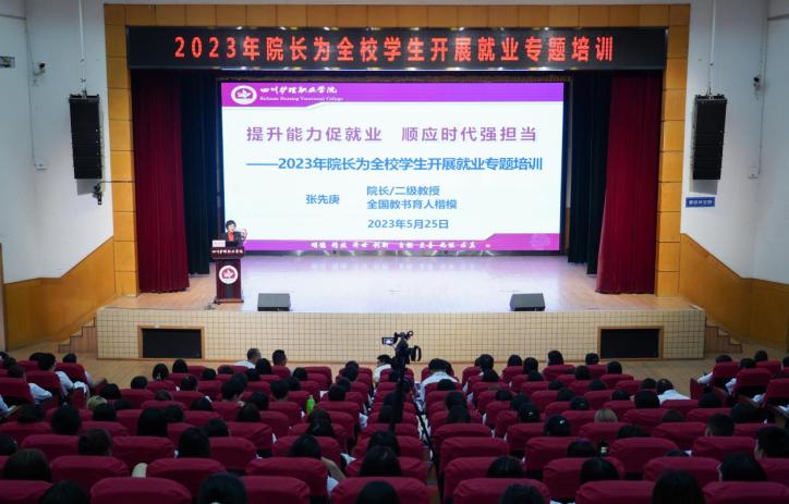 为深入贯彻落实党的二十大精神,进一步做好就业指导工作,促进学生更高质量更充分就业,5月25日,学院院长、全国教书育人楷模张先庚教授在成都校区多功能厅以“提升能力促就业  顺应时代强担当”为主题,为全院师生上了一堂精彩纷呈的就业指导课,11000余人线上线下同步听课,讲座由学院副院长梁小利主持。