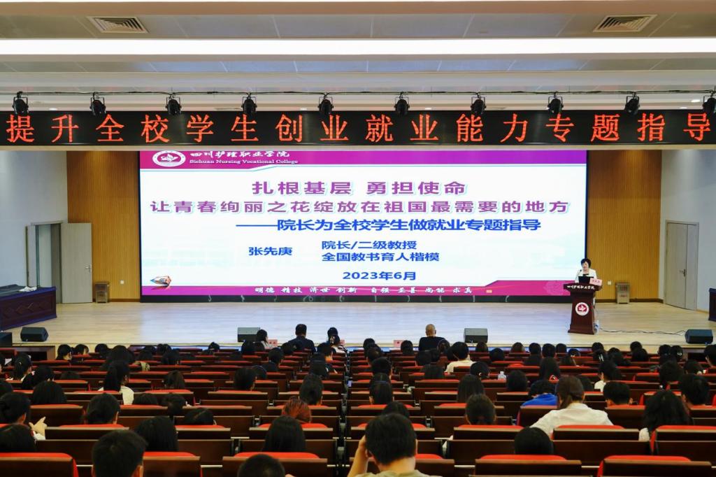 为贯彻落实党的二十大精神,进一步提升学生创业就业能力,6月21日,学院邀请扎根新疆的杰出护理毕业生、党的二十大代表、全国高校毕业生基层就业卓越奖获得者李文娟到德阳校区为师生开展提升创业就业能力专题指导讲座,学院院长张先庚、党政办、护理系等部门负责人及在校师生代表共计460余人现场聆听,讲座由学生工作部负责人申洋主持。