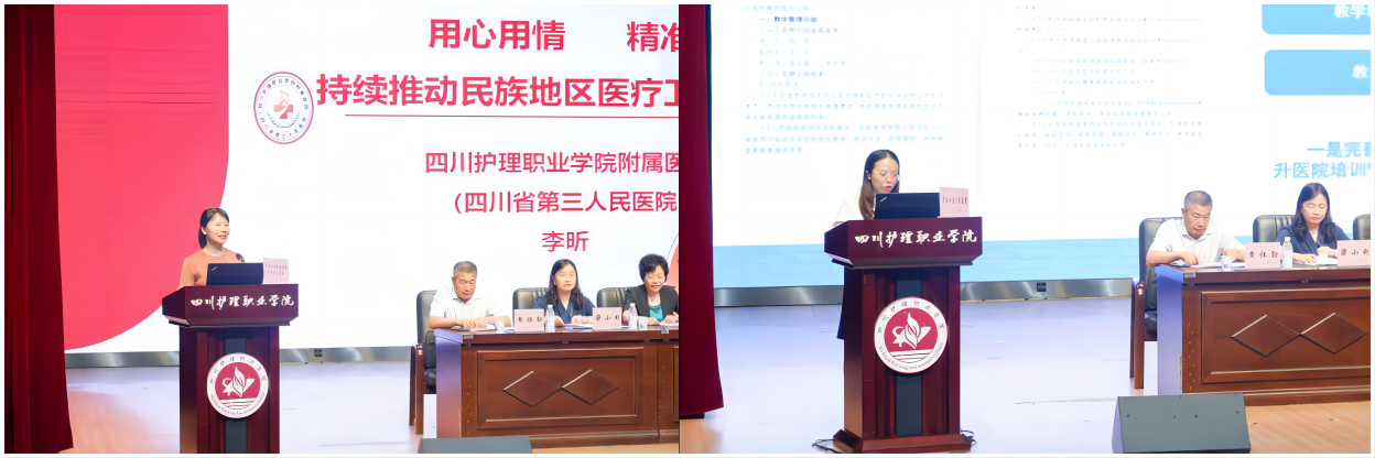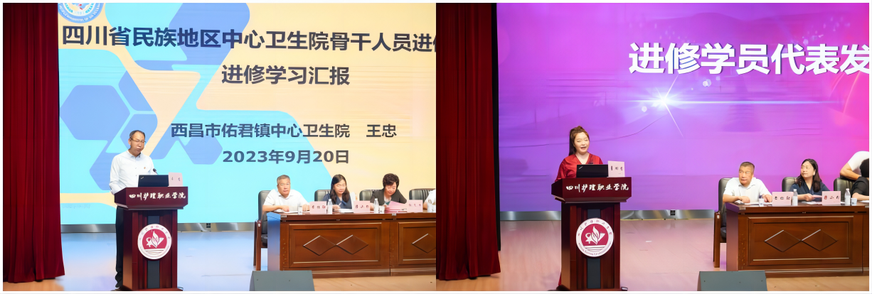 学院附属医院(四川省第三人民医院)医院科教部副部长李昕、成都市青白江区人民医院科研教学培训部主任王芳代表进修医院老师进行了发言,分享了项目开展的经验和亮点。西昌市佑君镇中心卫生院王忠、甘孜州丹巴县革什扎镇中心卫生院董树香代表进修学员发言,他们回顾了学习中的点点滴滴,收获颇丰,表达了自己最真挚的感谢,表示在未来的工作中,会将先进理念和经验带回自己的工作岗位,为家乡群众的健康服务。