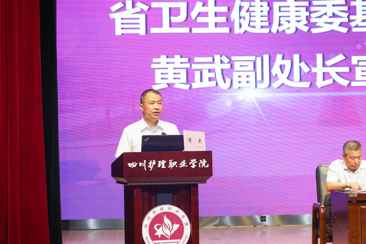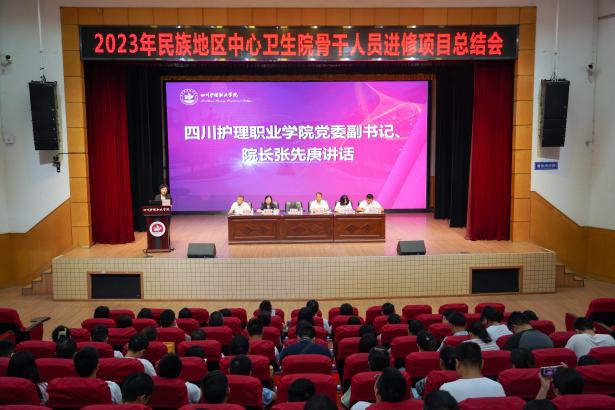 9月19日,2023年民族地区中心卫生院骨干人员进修项目总结会在学院成都校区举行。省卫生健康委基层卫生健康处副处长黄武、一级调研员黄怀勋,学院院长张先庚,学院附属医院(四川省第三人民医院)副院长赵晖霞出席,进修医院代表及134名学员参加,会议由学院副院长梁小利主持。