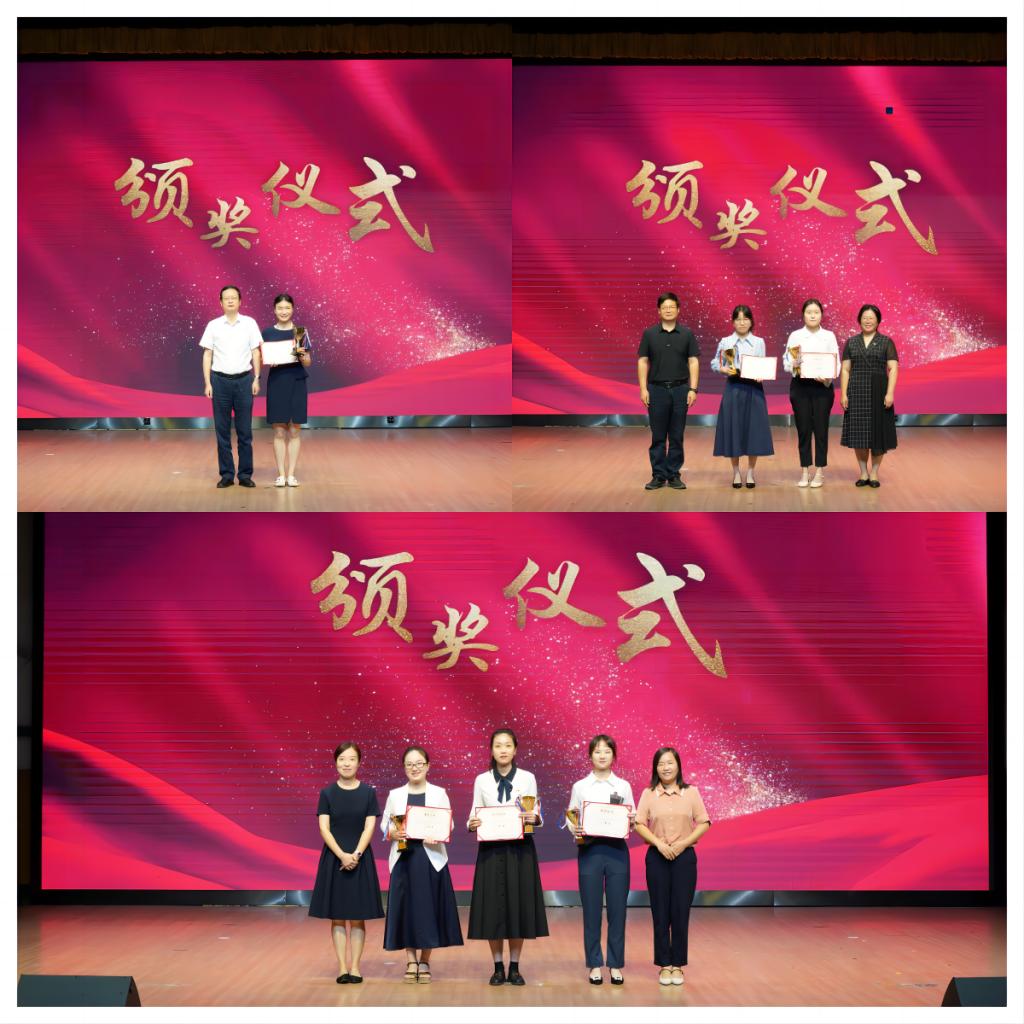 经专家评审与学生代表综合评分,何岱眉荣获一等奖,吴娟、潘君荣获二等奖,张雪洋、张力、唐茂军荣获三等奖。出席领导为获奖者颁发奖杯和证书,并合影留念。
