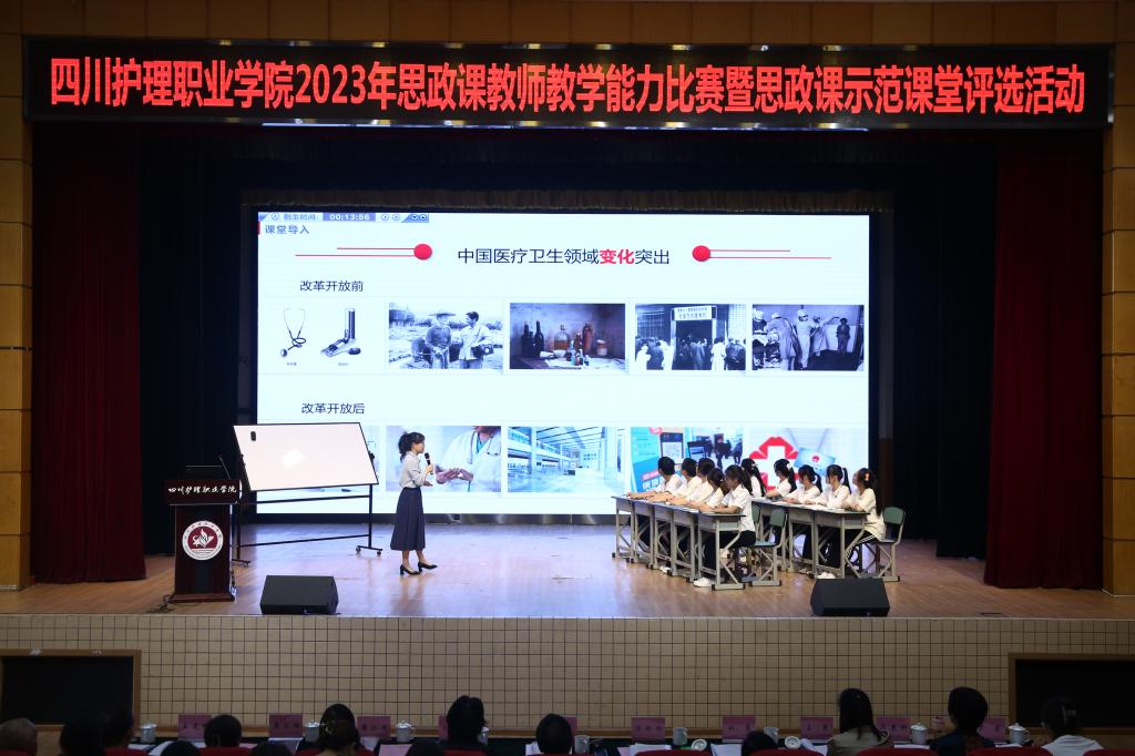 为深入贯彻习近平总书记关于教育的重要论述,切实抓好思政课教师队伍建设,全面提升思政课教师教学能力水平,9月21日,学院在成都校区举行2023年思政课教师教学能力比赛暨思政课示范课堂评选活动。学院党委书记江涛、副院长陈劲松、梁小利出席,活动特邀成都中医药大学马克思主义学院院长刘东梅作为专家评委并做点评,宣传部、教务处、工会办公室、学院各系部相关负责人、院级督导专家、思政课专兼职教师及学生代表参加活动。活动由思政部主任杨梅主持。