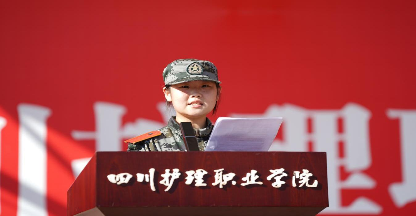 2023级康复技术2班王映玥、2023级护理6班孙君杰代表全体参训同学郑重承诺,必将刻苦训练,磨练意志,以军训为大学生活新起点扬帆起航,坚守爱党爱国初心,以实际行动践行“请党放心,强国有我”铮铮誓言。