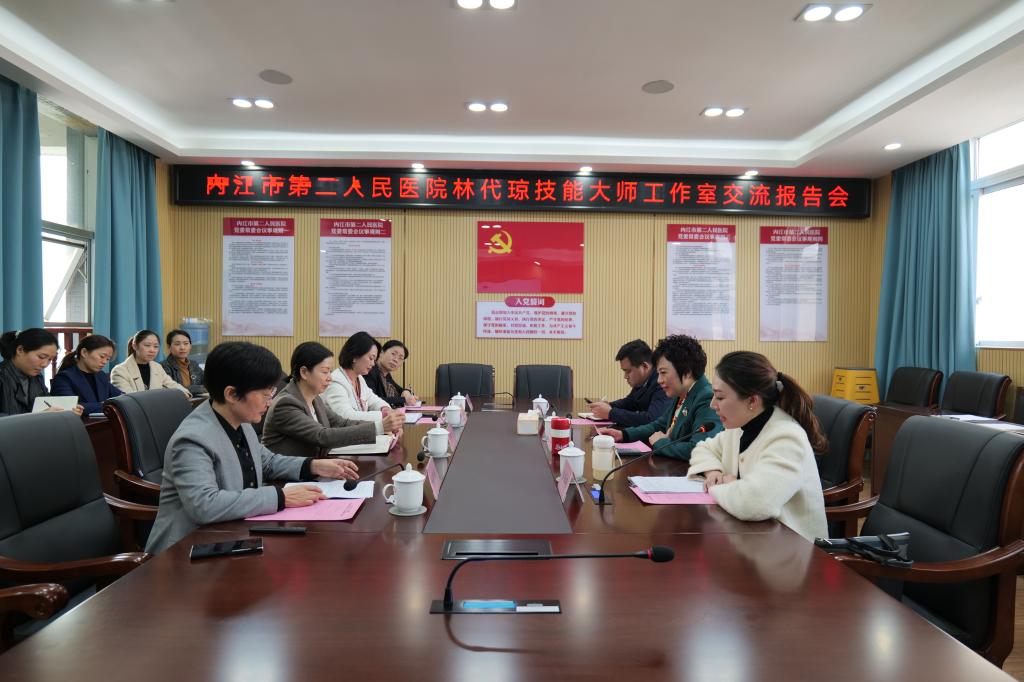 学院护理技能大师工作室负责人、内江市第二人民医院林代琼报告工作室建设情况,重点介绍了护理科学研究、人才培养、师资队伍培训等取得的业绩。张先庚代表学院对林代琼大师培养指导护理学生表示感谢。她指出,高素质护理职业人才的培养离不开高水平大师的培养与指导,以技能大师工作室为抓手,深入推进产教融合改革,对学生提升临床技能人文素养、创业就业能力等意义重大。