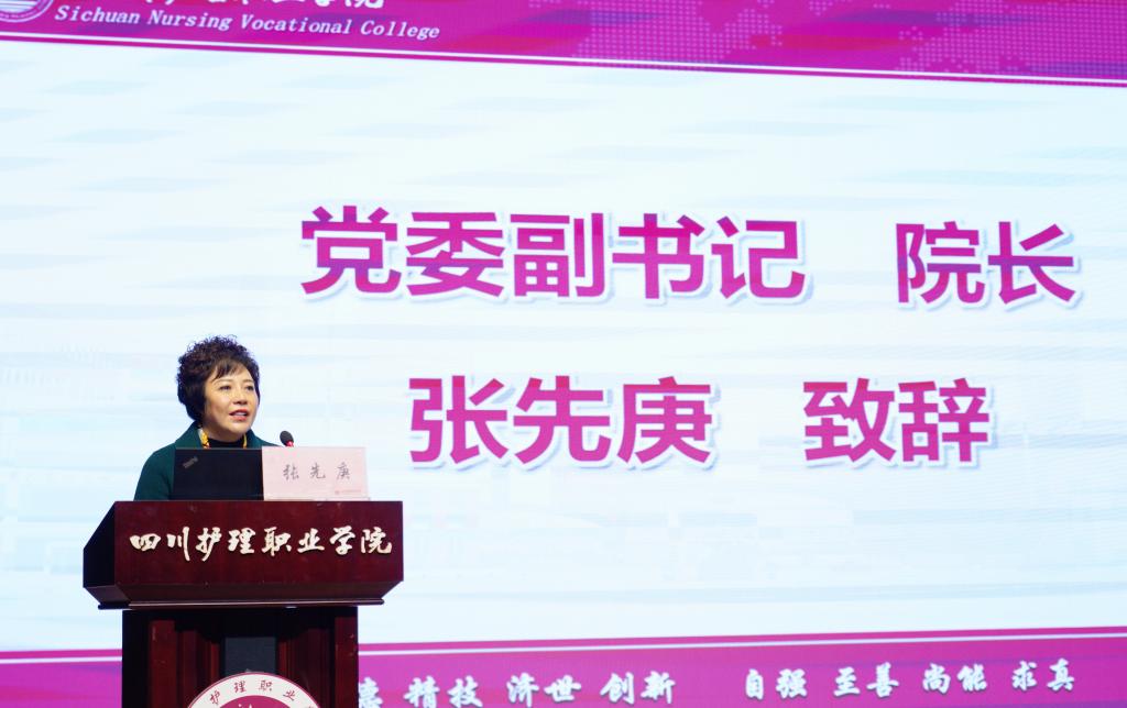张先庚院长在致辞中指出,为深入贯彻习近平总书记关于做好新时代人才工作的重要思想,大力弘扬教育家精神,积极践行“五爱五尽”家校情怀,深入推进“五大强校”战略,尤其是落实好“教师队伍,强校之基”战略,近年来,学校聚焦师资队伍建设,开展以塑造职业教育教学名师、教学新秀和教学苗圃为目标的教师能力提升工程,以强化“名师”意识,增强“名师”效应,发挥“名师”作用。她强调,教师能力提升“三大工程”是川护打造的教师品牌工程,旨在选树一批奋战在教学一线的师德高尚、教学理念先进、教学水平高、教学效果好、职业技能强的教师典型,打造名师品牌,发挥该品牌的权威性、学术性、时代性和引领性。“三大工程”是培养新时代“人师”“经师”的重要抓手,也是学校深化内涵建设的重要举措,希望全体教师以名师为榜样,见贤思齐、担当作为、创新发展,切实加强师德、师能、师风建设,提升教育教学水平和成效,全面推进学校高质量发展。
