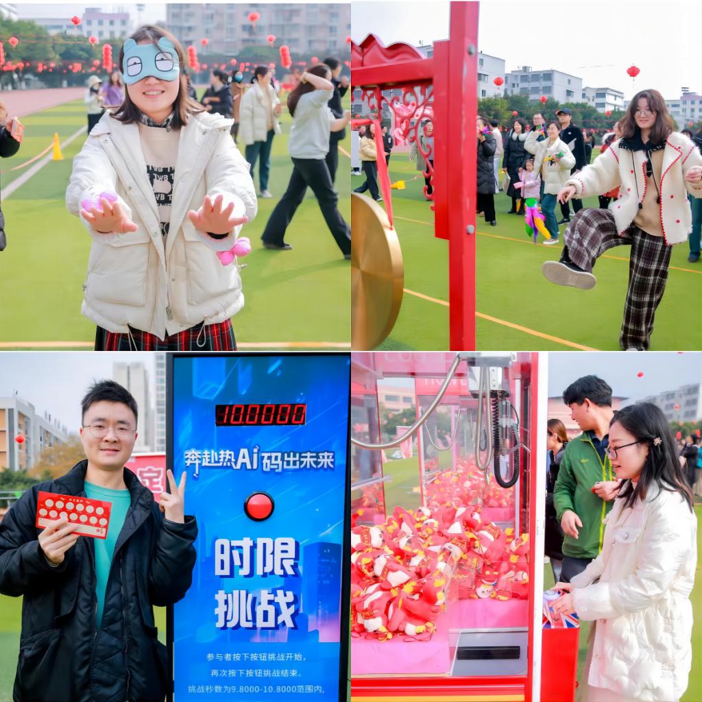 本次活动设置福龙贺岁、龙来进宝、福气连连等8个游园项目和写春联送福、糖画、舞龙等6个年味体验项目,并为参与活动的教职工准备有新春大礼品。为取得进步与成绩的2023年而庆贺,为充满生机与希望的2024年而祝福。