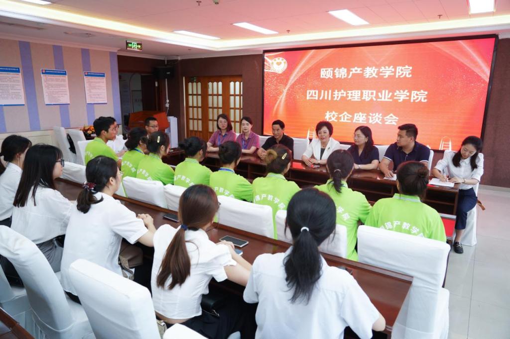 随后,张先庚一行实地观看实习生的实践技能展示,与实习学生、颐锦集团领导老师进行了亲切座谈和深入交流,全面了解同学们的生活情况和实习收获,考查了部分在岗实习生的实践技能操作,并从老年照护技术、人文关怀、职业素养等方面给予悉心指导。她对全体实习生提出三点希望,一是要感恩学校和颐锦集团携手搭建的学习平台,以“四有川护生”为目标,快乐实习,不断提升自身综合素养和能力,为服务国家智慧养老事业奠定基础;二是全面提升专业水平,鼓励大家要珍惜实习的黄金时光,做中学、学中做,理论与实践结合提升专业知识与技能;三是弘扬“川护”大爱精神,在工作中始终要以高度的责任心、爱心、细心和耐心对待每一位老人,争做情怀深、技能精、善创新、讲奉献的新时代卫生健康新人,为健康中国、健康四川做贡献。