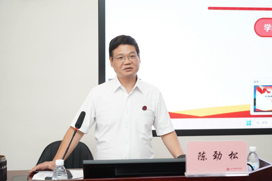 陈劲松作“牢记教育初心,争当四有好老师”为题的专题讲座,以习近平总书记提出的“一个人遇到好老师是人生的幸运,一个学校拥有好老师是学校的光荣,一个民族源源不断涌现出一批又一批好老师则是民族的希望”为切入点,深入阐释好老师对学校乃至民族的重要性。结合教师与辅导员的职责就如何当好“四有”好老师进行深入探讨。他重点从教育的根本问题、师德师风建设、大力弘扬教育家精神三个方面进行讲解,他提出,新教师要以教育家为榜样,大力弘扬教育家精神,真正做到安心从教、精心从教、终生从教,为学院的高质量发展贡献力量。