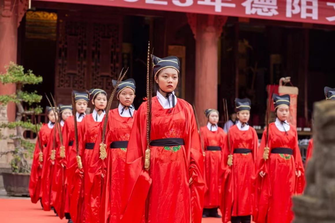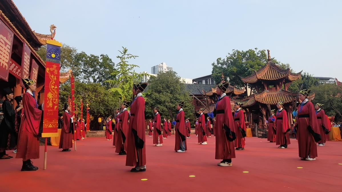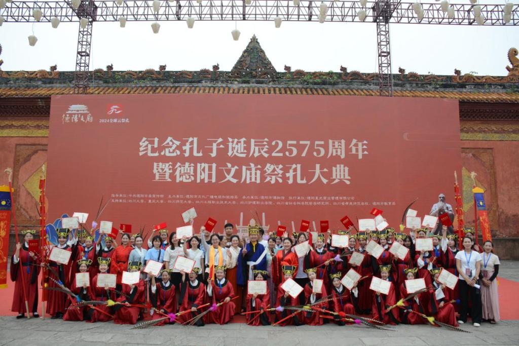 为传承和弘扬中华优秀传统文化,9月28日,德阳市纪念孔子诞辰2575周年暨德阳文庙祭孔大典在德阳文庙举行。学院受德阳市文化广播电视和旅游局邀请参加此次祭典演出,共40名同学参加。