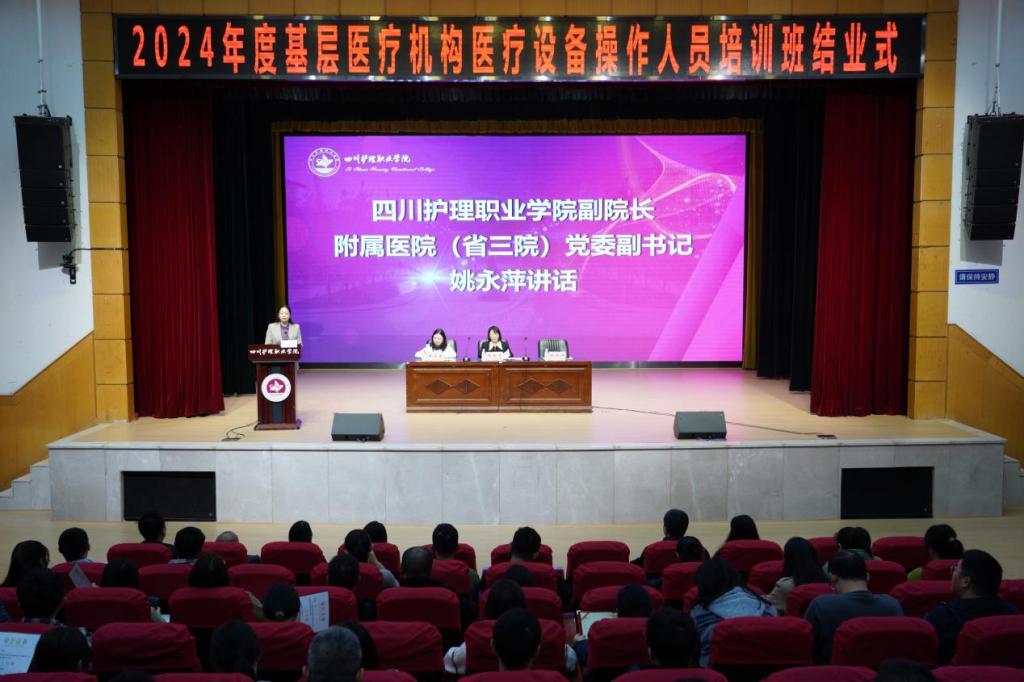 11月7日,2024年度基层医疗机构医疗设备操作人员培训班在学院成都校区举行结业式,四川省卫生健康委员会项目管理中心主任李德芳,学院副院长、附属医院(省三院)党委副书记姚永萍,学院党委委员、副院长梁小利出席,项目相关负责人和来自省内57名学员参加,结业式由梁小利主持。