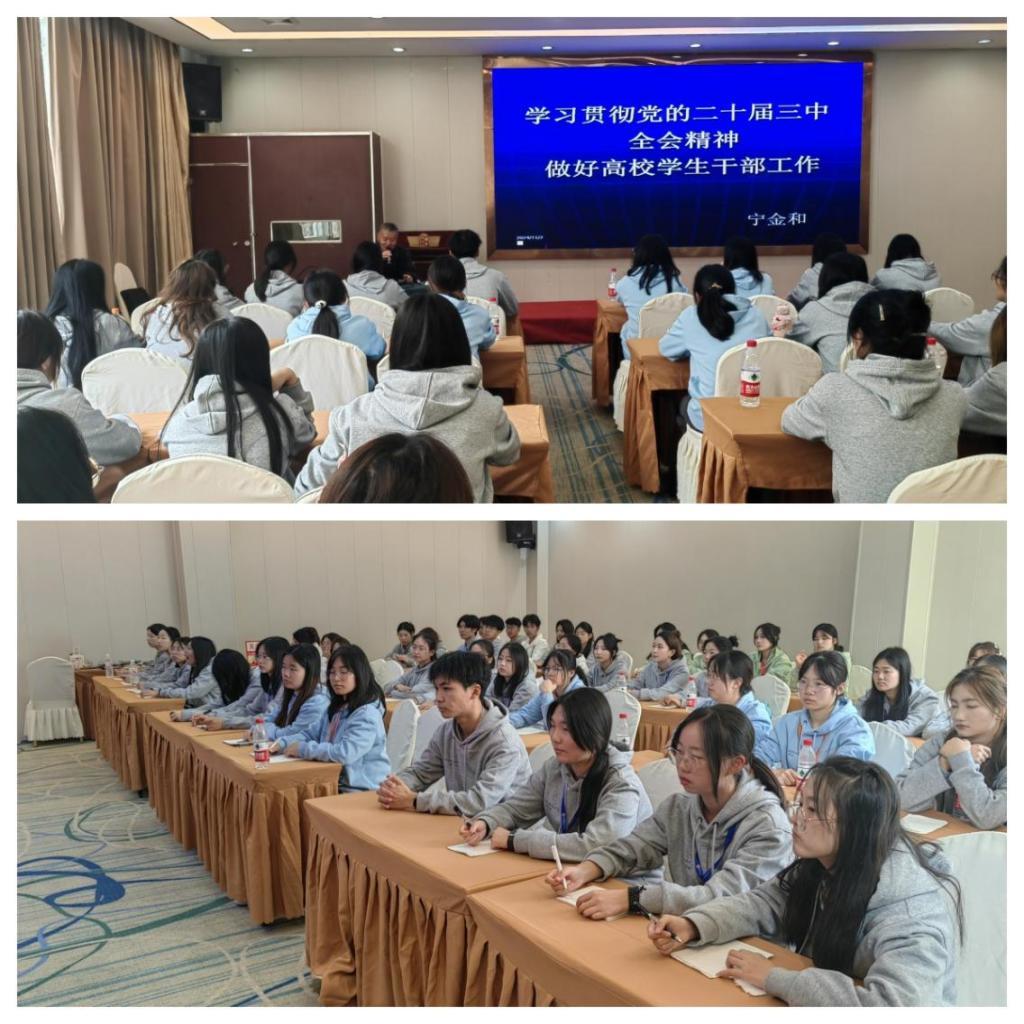 在理论授课环节,邀请了中共成都市委党校法学教研部原主任宁金和教授为同学们进行《党的二十届三中全会精神宣讲》和《学生干部素养提升》两场精彩主题授课。宁教授结合时事和自身多年工作经验,深入浅出地为同学们分享了党的二十届三中全会精神要点,引导同学们要准确理解和把握国家的发展脉搏。同时围绕如何提升沟通协调能力、领导力、团队协作力等方面给出了具体建议。