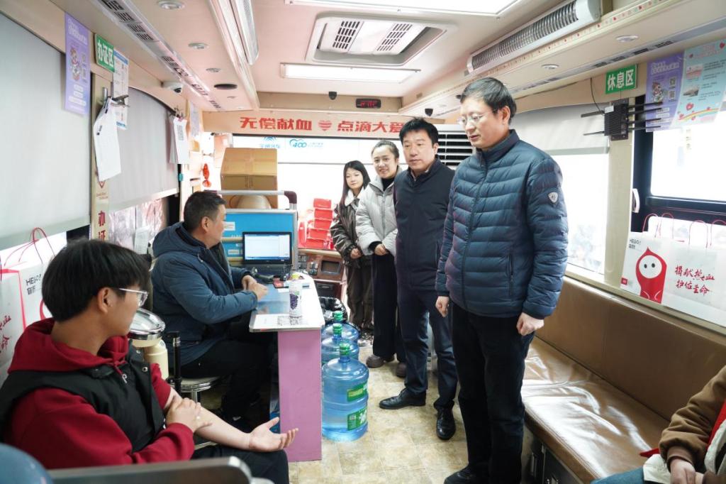 活动现场,师生们积极踊跃,在血站工作人员和学生志愿者们的指引下,排队、登记填表、身体检查、血液初筛、血液采集等环节井然有序。学院党委书记江涛、党委副书记彭博文来到现场,亲切慰问参与无偿献血的师生及志愿者们,与献血师生深入交谈,仔细询问献血情况与身体状况,对师生们的无私大爱给予高度肯定,并鼓励大家发挥榜样力量,带动更多同学投身公益事业。