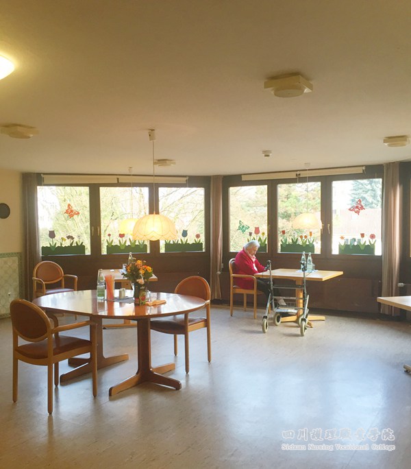 一个多月的学习之后,进入到一个多月的养老院实践。在养老院的实践期间,让我体会到了不一样的工作环境,了解到当下德国的养老护理,的确处于人员匮乏的阶段。在这之前,我以为一个护理员只负责一两个老人的生活起居及日常活动,去过之后发现,远远不如自己想的那样轻松,当然,也还是没有国内医院的那种马不停蹄的忙碌状态。一个科室会有20-30个老人,有部分可自理的老人,有完全自理但还是需要帮助的老人,也有完全不能自理的老人。每天早上六点十五到下午两点,会有3、4个护理员上班,每个护理员每天负责7、8个老人的生活起居护理,下午两点到晚上九点会有2、3个护理员上班,晚上九点十五到次日凌晨一般有2个护理员,夜班属于自愿申请,工资也是不菲的。早班和晚班的护理员中至少有一个是Pflegefachkraft(相当于每天的领班),因为只有这个职称的人才可以负责药品的分发,血糖测量和肌肉注射。德国的医疗制度完善,基本每一个人都会有一个家庭医生(掌握所有你的健康资料),所以在养老院是没有固定的医生的,所有老人的药都会由药店每周送来,单独小包分装好,然后每天按照时间段分发即可。老人每天都会被组织到一起做各种各样的活动,每个星期的每一天都是一样的,对于我来说,这些活动还是有些无聊的,不过这也跟德国人死板恪守的性格有关,从幼到老,每个年龄阶段的人,让我感受不到一点活力,所以养老院很多老人基本上都有老年痴呆。从这一点来说,我觉得中国老人的心态要好很多。