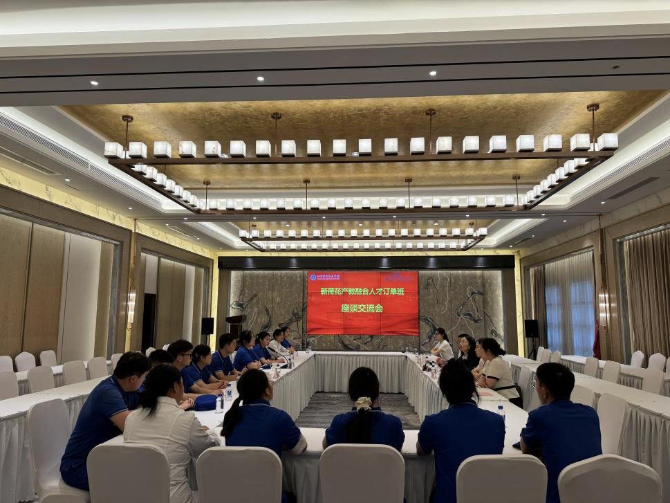 仪式结束后,梁小利副院长一行与订单班学员开展座谈,详细了解学生岗位适应情况和生活保障需求,并提醒同学们要以安全为首,努力提升自己的专业技能和综合素质。