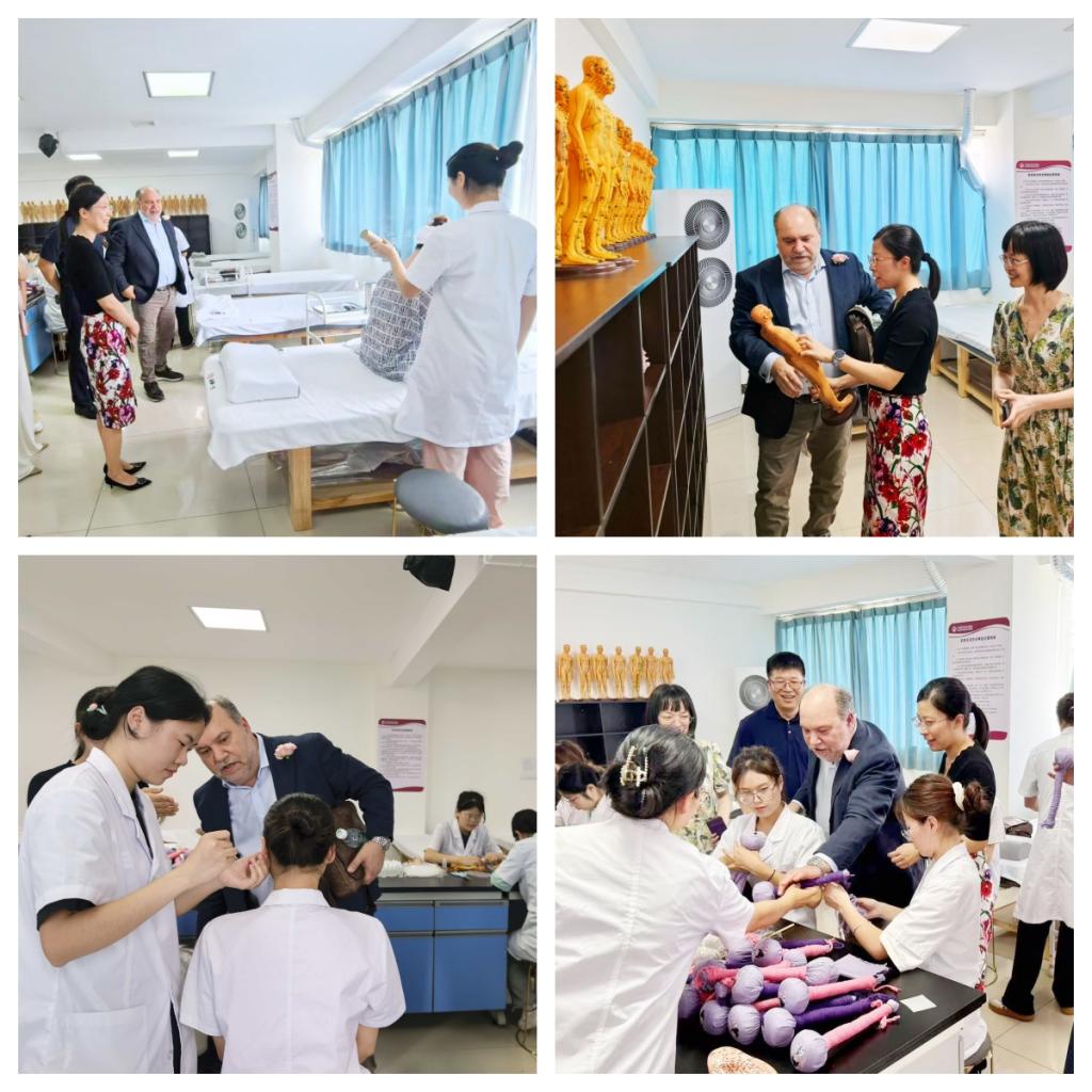 会前,克里斯托弗总监一行参观了学院医美实训中心,亲身体验了艾灸、拔罐、刮痧、耳穴等中医美容特色项目,对学院医美人才培养成效给予高度评价。
